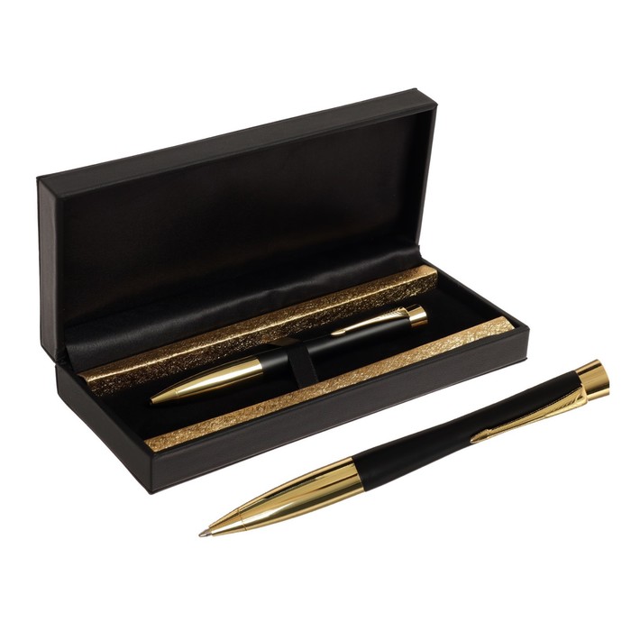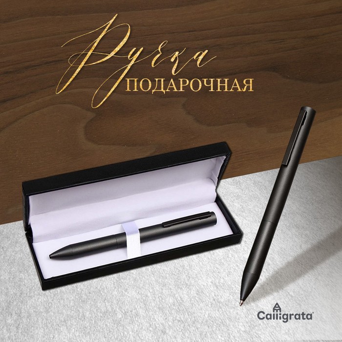 Ручка подарочная шариковая Calligrata, в кожзам футляре ПБ U, поворотная, корпус чёрный с золотом