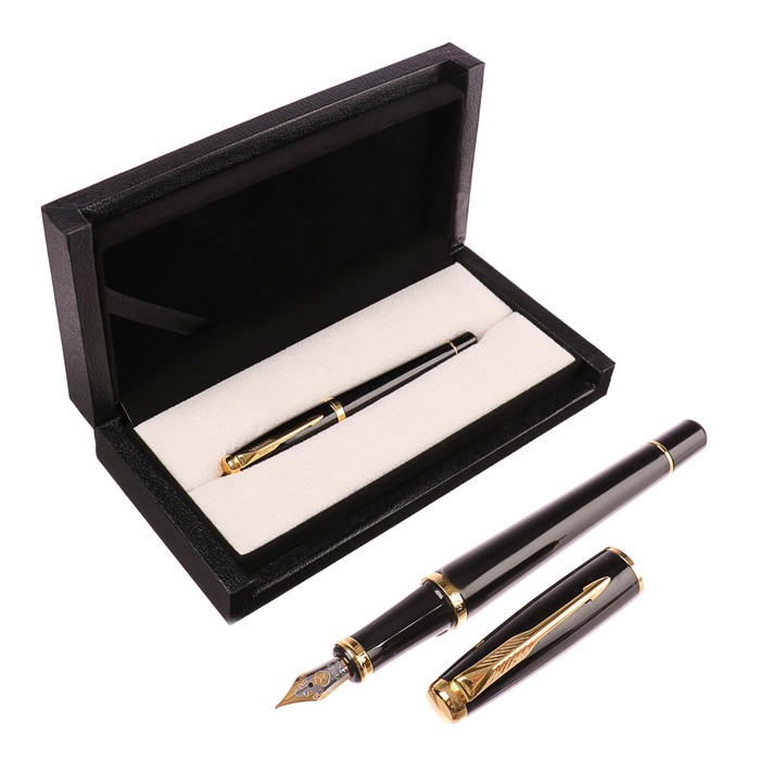 Ручка подарочная, перьевая, в кожзам футляре, VIP, корпус чёрный