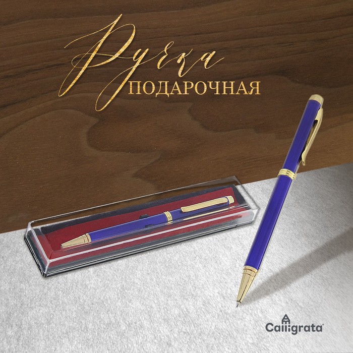 Ручка подарочная, шариковая, в пластиковом футляре, поворотная, «Эксперт», синяя с золотистыми вставками
