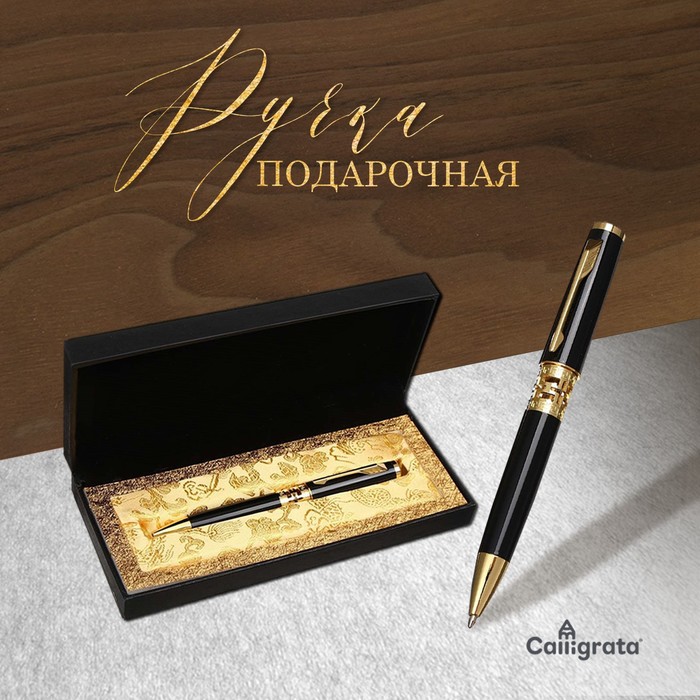 Ручка подарочная, шариковая «Грант» в кожзам футляре, поворотная, корпус чёрно-золотистый