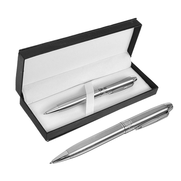 Ручка подарочная шариковая в футляре из искусственной кожи Calligrata «VIP», поворотная, корпус чёрный с серебряными вставками