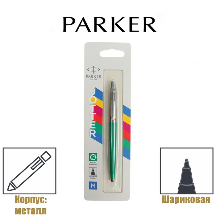Ручка шариковая Parker Jotter Color М, корпус пластиковый, зелёный, синие чернила, блистер