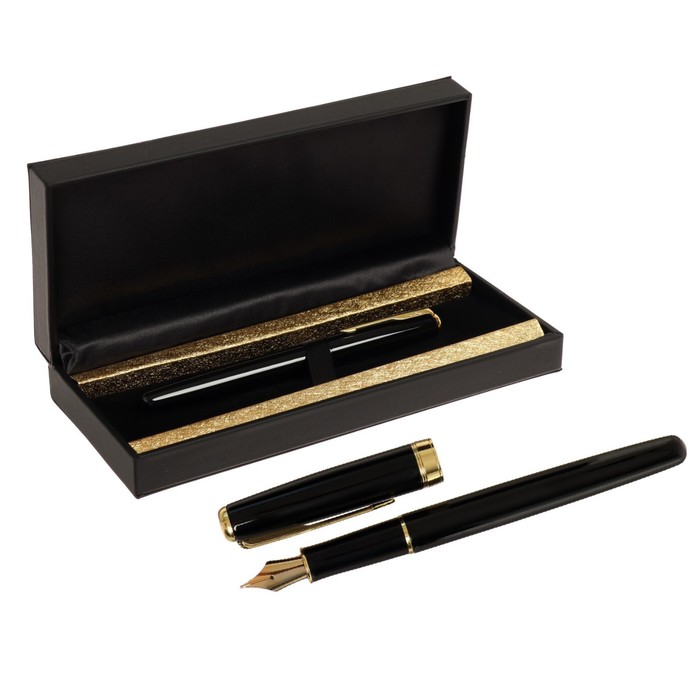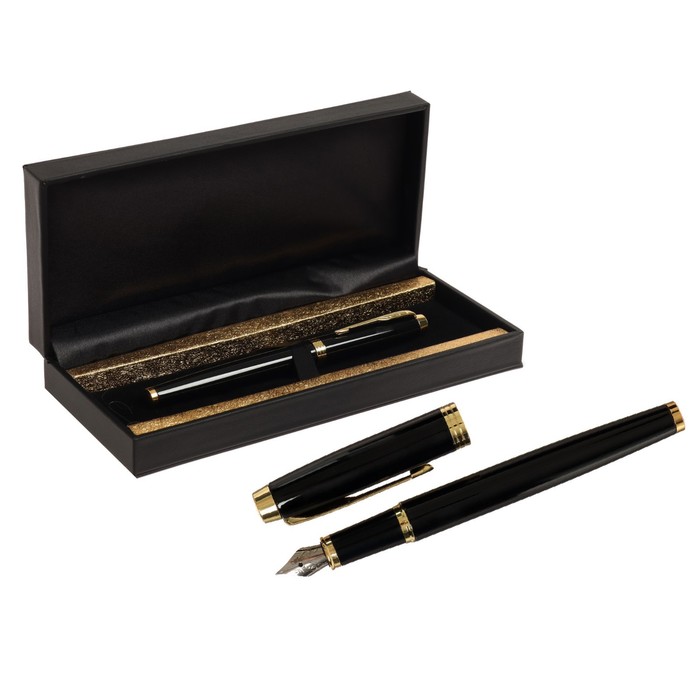 Ручка подарочная перьевая Calligrata, в кожзам футляре ПБ IM, корпус чёрный с золотом