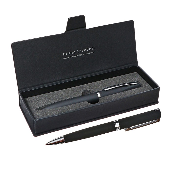 Ручка шариковая поворотная, 1.0 мм, BrunoVisconti MILANO, стержень синий, металлический корпус Soft Touch чёрный, в футляре из экокожи