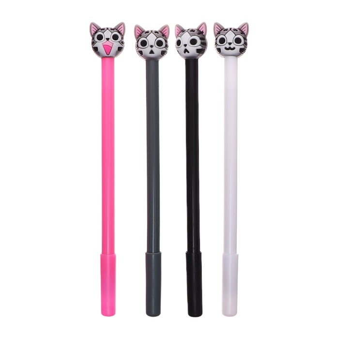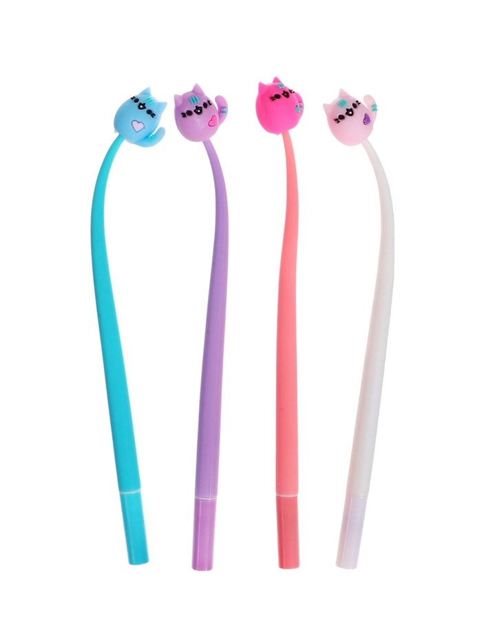 Ручка гелевая-прикол, синий стержень, Котик МИКС