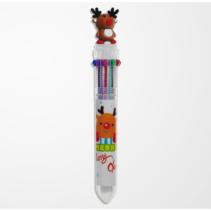 Ручка шариковая автоматическая, 10-ти цветная "Новый год. Олень"