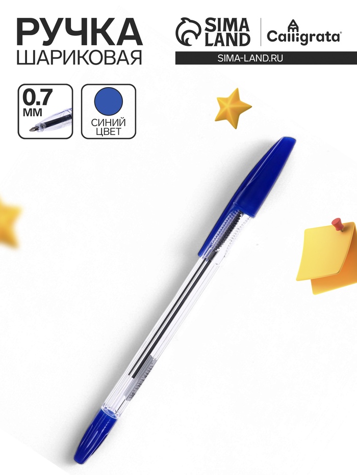 Ручка шариковая 0.7 мм, стержень синий, корпус прозрачный с синим колпачком