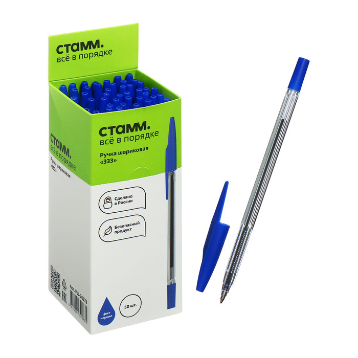 Ручка шариковая СТАММ "333", узел 0.7 мм, стержень 130 мм, чернила синие на масляной основе