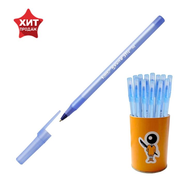 Ручка шариковая, чернила синие, 1.0 мм, среднее письмо, BIC Round Stic Classic, стакан в ПОДАРОК