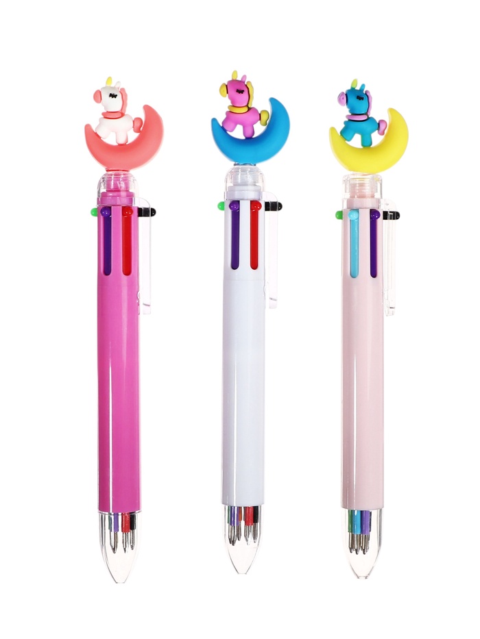 Ручка шариковая автоматическая 6-ти цветная Единорог на луне