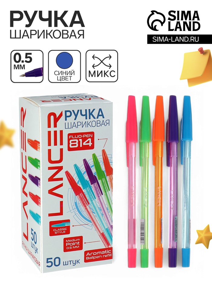 Ручка шариковая LANCER Fluo 814, 0.5 мм, стержень синий, ароматизированная, МИКС