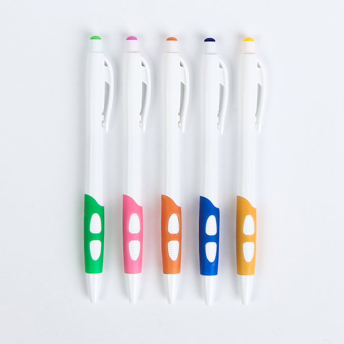 Набор ручек шариковых, 4 штуки, цветной корпус, с резиновым держателем, МИКС