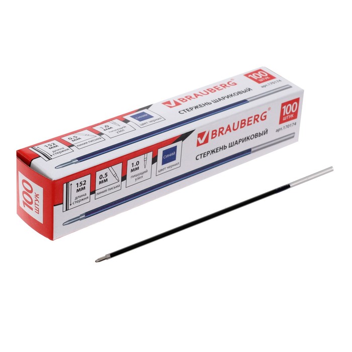 Стержень шариковый BRAUBERG Line, 1.0 мм, длина 152 мм, евронаконечник, чернила синие