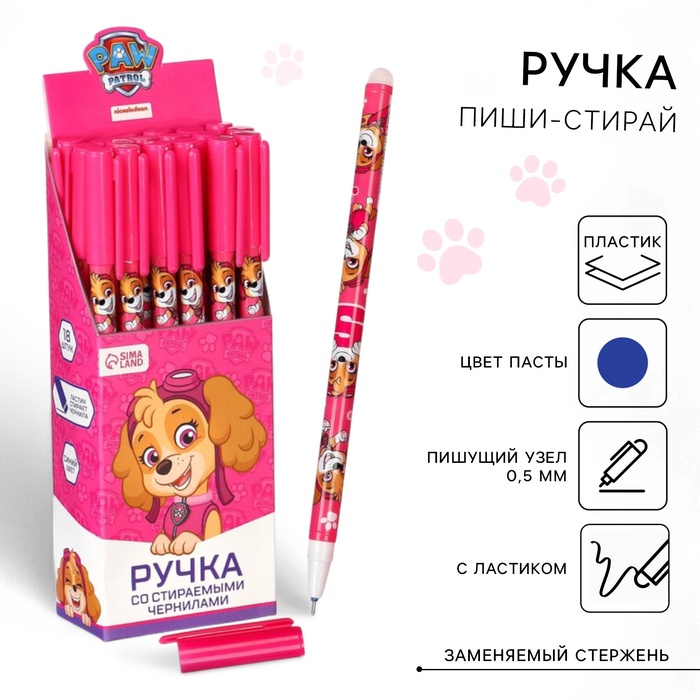 Ручка гелевая со стираемыми чернилами, стержень синий 0.5 мм, корпус с рисунком, МИКС