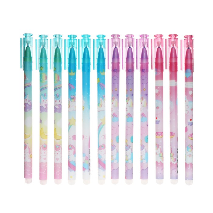 Ручка гелевая со стираемыми чернилами, стержень синий, корпус "Единорог", МИКС