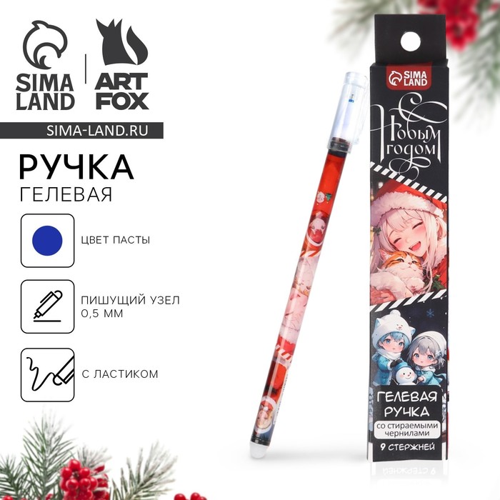 Ручка пиши-стирай, гелевая, синяя паста, 0.5 мм и стержни 9 шт. «Новый год: Аниме»