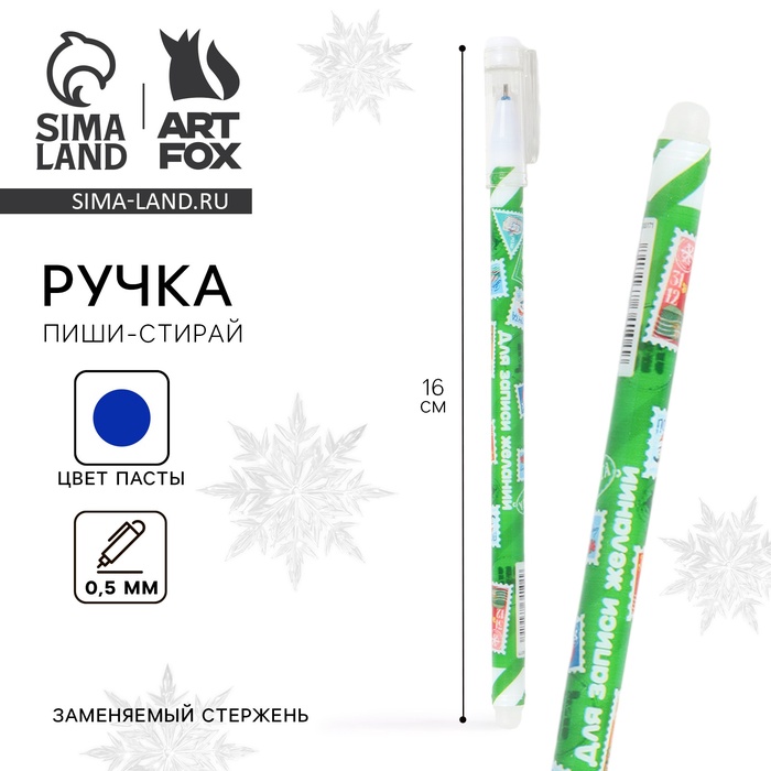 Ручка пиши-стирай, гелевая, синяя паста, 0.5 мм, с колпачком «Новый год: Для записи желаний»
