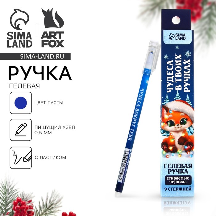 Ручка пиши-стирай, гелевая, синяя паста, 0.5 мм и стержни 9 шт. «Новый год: Чудеса в твоихх»