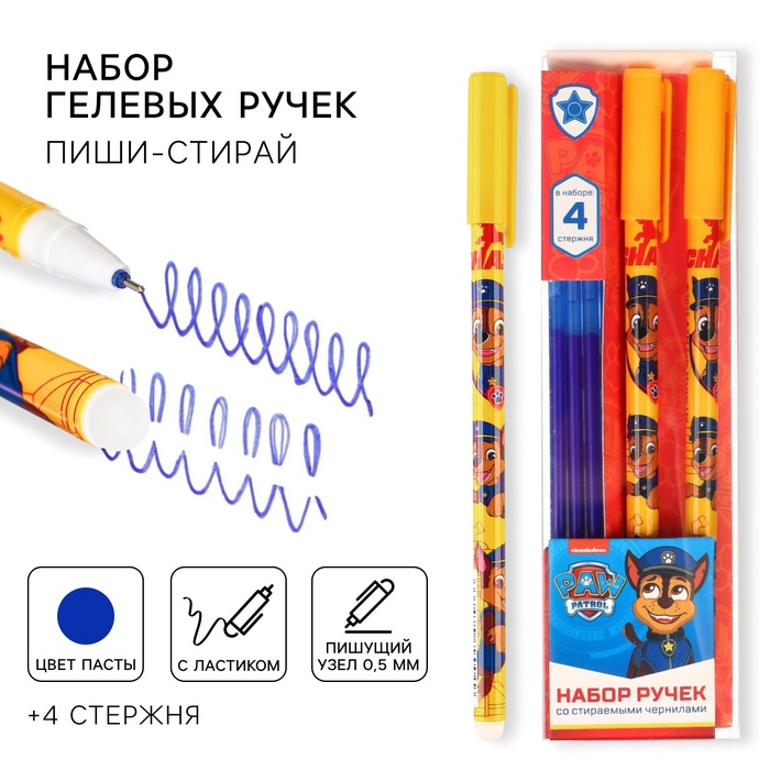 Ручка пиши стирай, 2 штуки, 4 стержня, «Щенячий патруль»