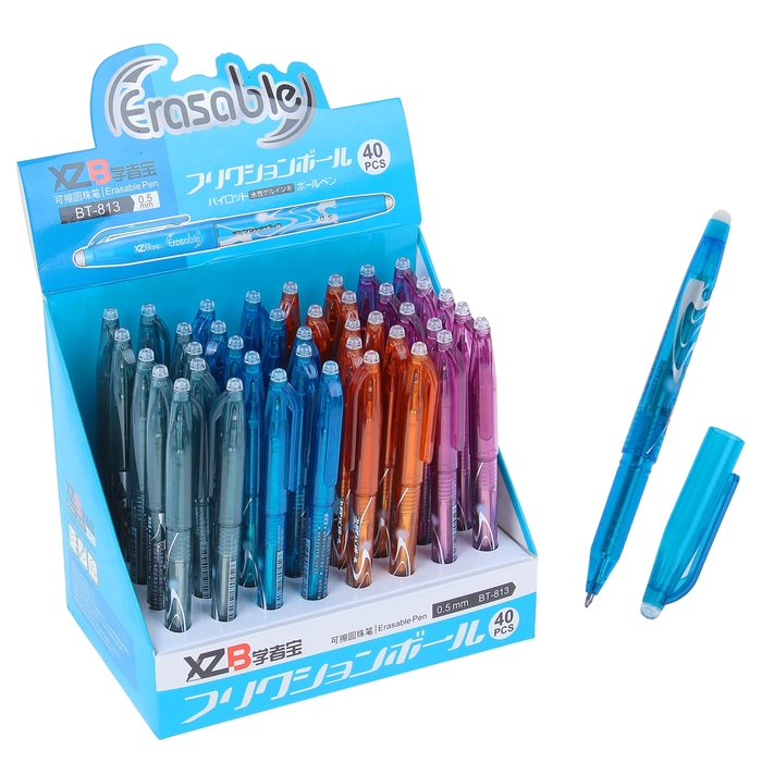 Ручка шариковая со стираемыми чернилами, линия 0.5 мм, стержень синий, корпус МИКС (штрихкод на штуке)