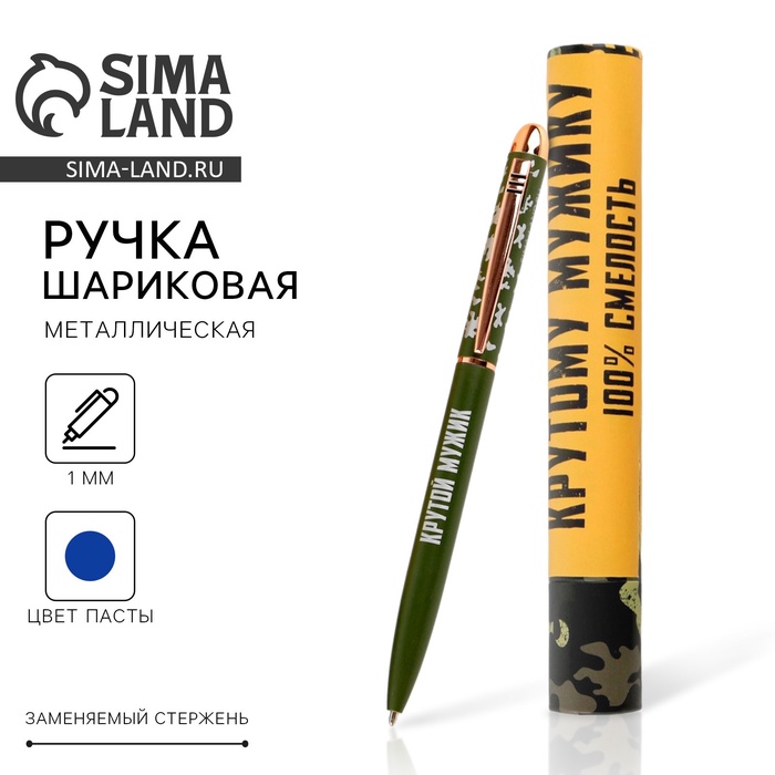 Ручка металл в подарочном тубусе «Крутому мужику», синяя паста, 1.0 мм
