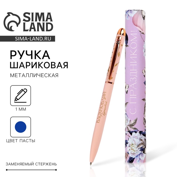 Ручка шариковая, синяя паста, 1.0 мм, розовое золото металл в подарочной коробке «Вдохновляй»