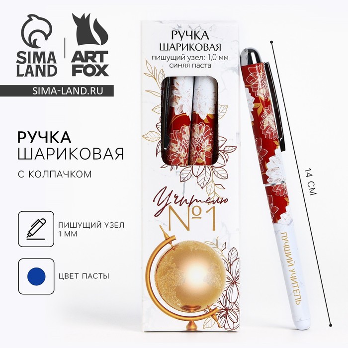 Ручка шариковая, синяя паста пластик с колпачком 1.0 мм «Лучший учитель»