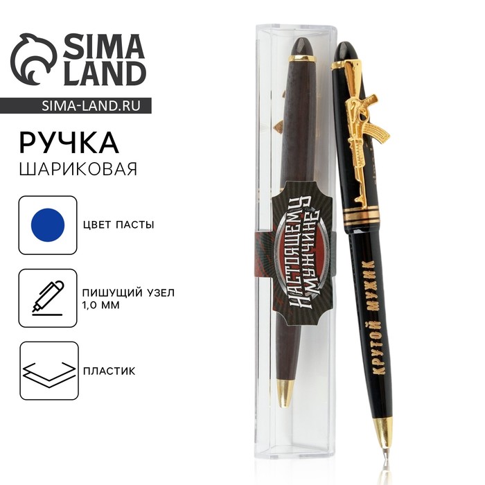 Ручка шариковая синяя паста 1.0 мм с фигурным клипом «Настоящему мужчине» пластик