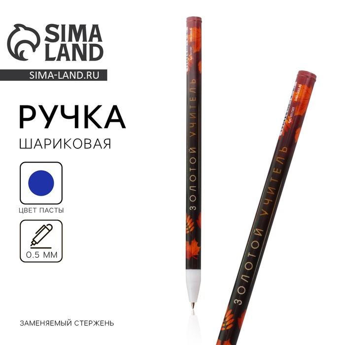 Ручка шариковая пластик с колпачком, синяя паста, шариковая 0.5 мм «Учителю: Золотой учитель»