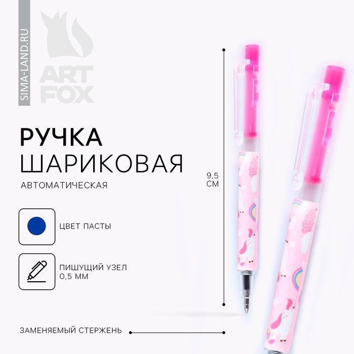 Ручка шариковая синяя паста мини автоматическая «Единорожки»