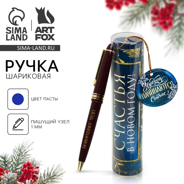 Ручка шариковая, синяя паста, 1.0 мм, пластик, в тубусе «Счастья в Новом году!»