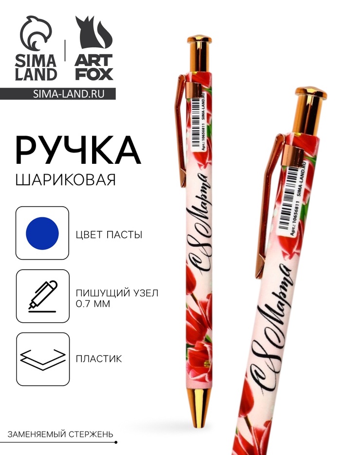 Ручка шариковая, синяя паста, пластиковый корпус «С 8 марта тюльпаны»