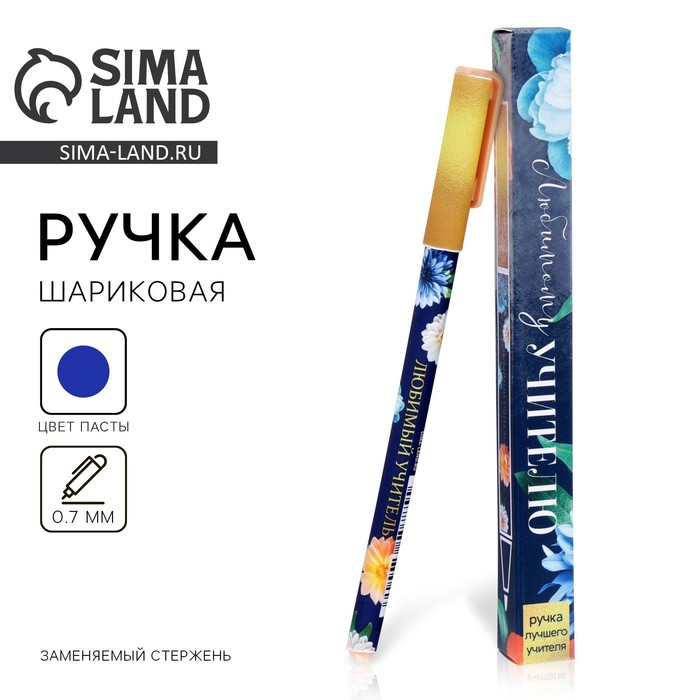 Ручка шариковая подарочная, пластик, синяя паста, 0.7 мм «Любимому учителю»