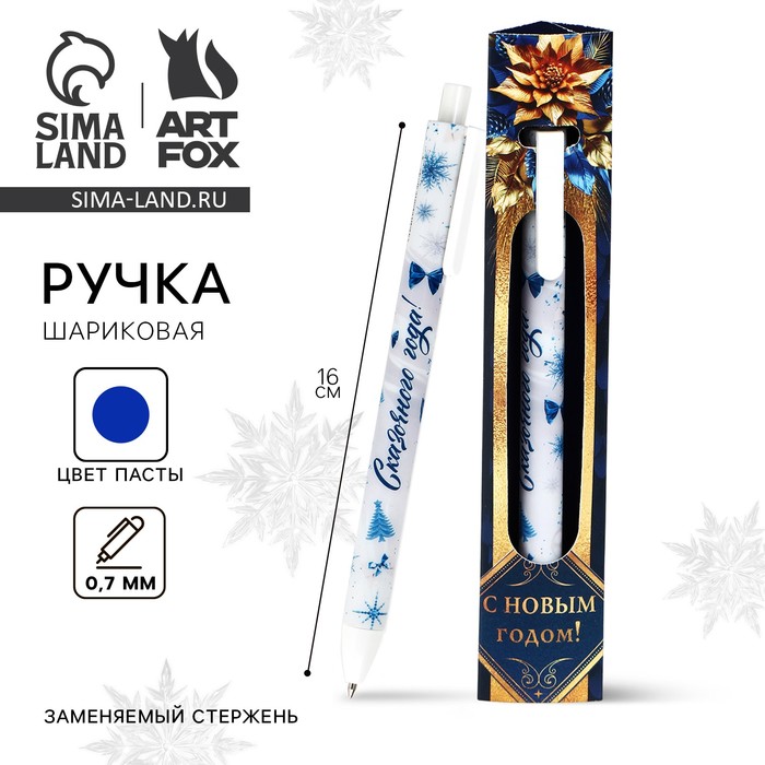 Ручка шариковая, синяя паста, 0.7 мм, автоматическая, матовая, в конверте «С Новым годом!»