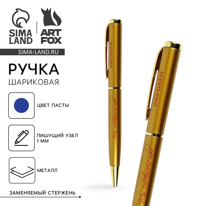 Ручка шариковая, синяя паста металлический корпус, золотой корпус 1.0 мм «Ты совершенна»