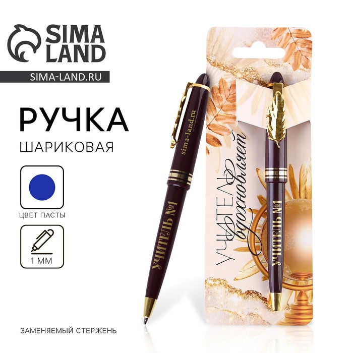 Ручка шариковая, синяя паста пластик с колпачком 1.0 мм «Лучшему учителю в мире»