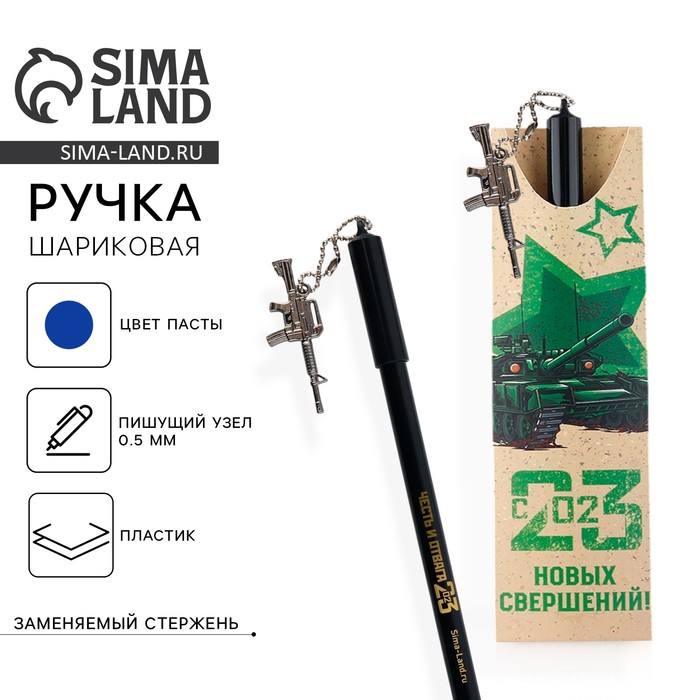 Ручка шариковая, синяя паста 0.5 мм с подвеской автомат пластик «Новых свершений. 23 февраля»