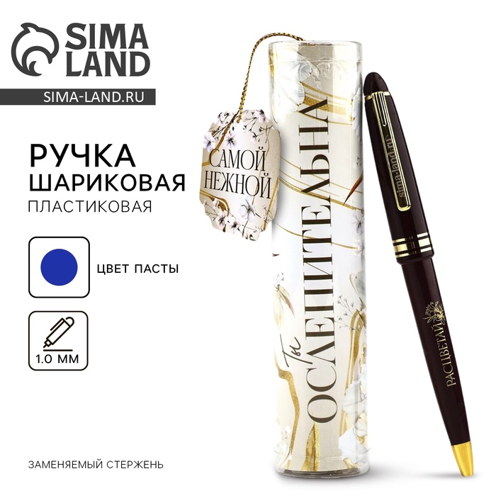 Ручка шариковая, синяя паста, в тубусе, пластик «Ты ослепительная»
