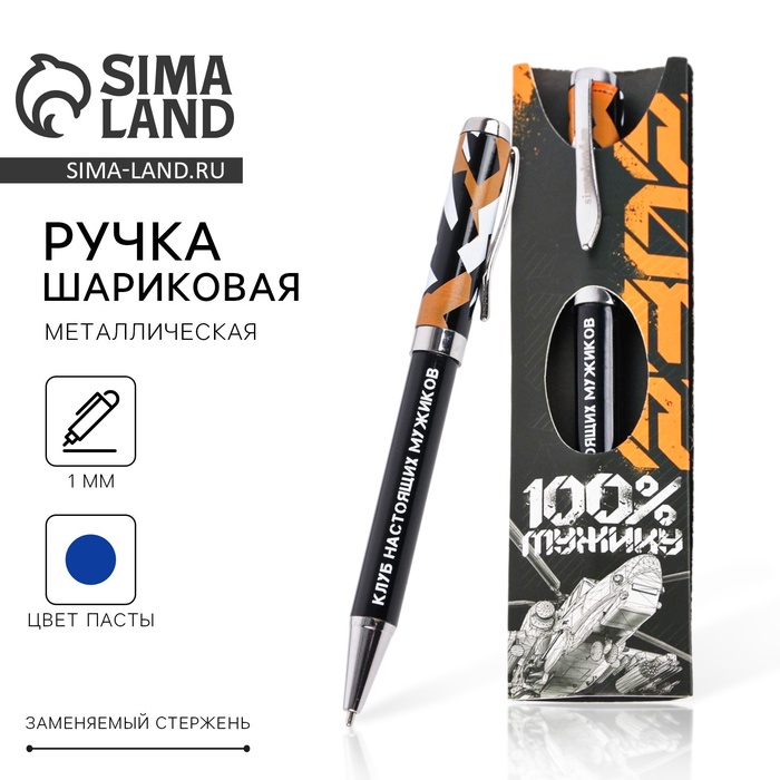 Ручка шариковая, подарочная, в конверте, металл, синяя паста «100% мужику»