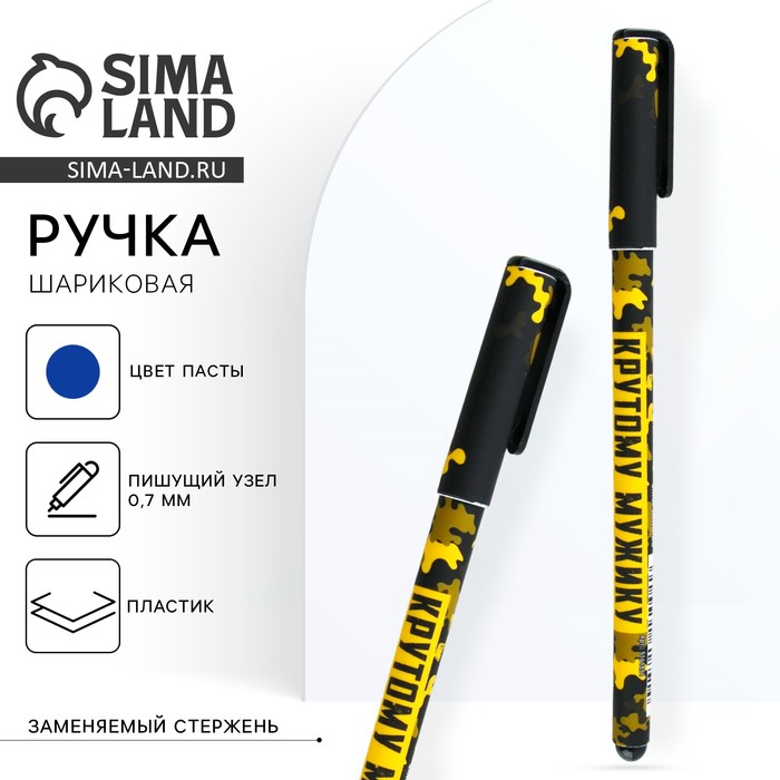 Ручка шариковая, синяя паста 0.7 мм с колпачком пластик софт-тач «Крутому мужику»