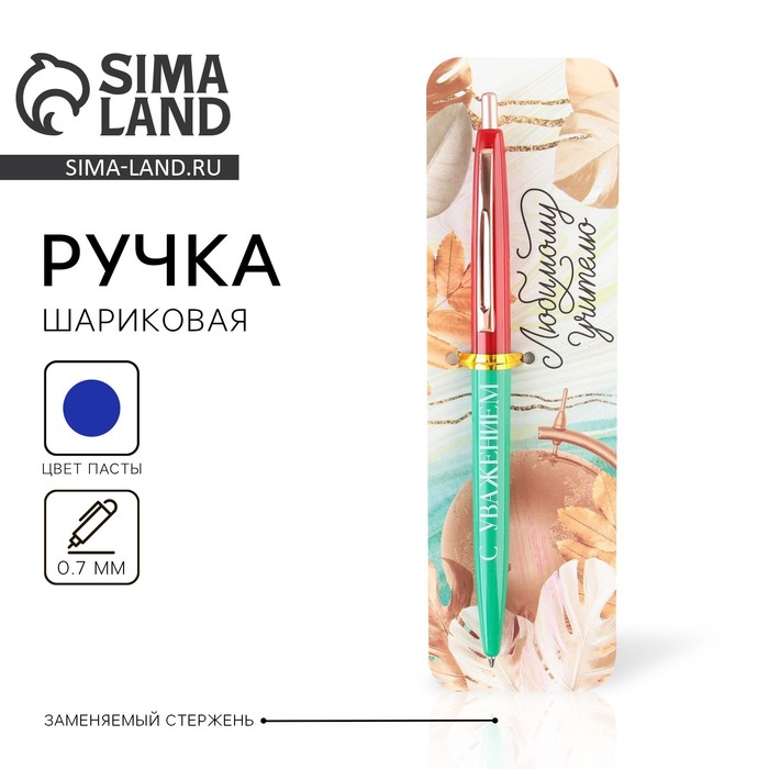 Ручка шариковая автоматическая пластик, синяя паста, 0.7 мм «Любимому учителю, с уважением!»