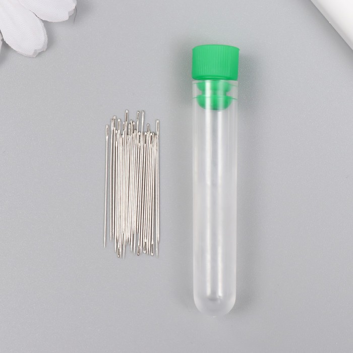Иглы металл для бисера в стеклянной колбе тонкие набор 30 шт., d=0.6×120 мм, 1.5×1.5×14 см
