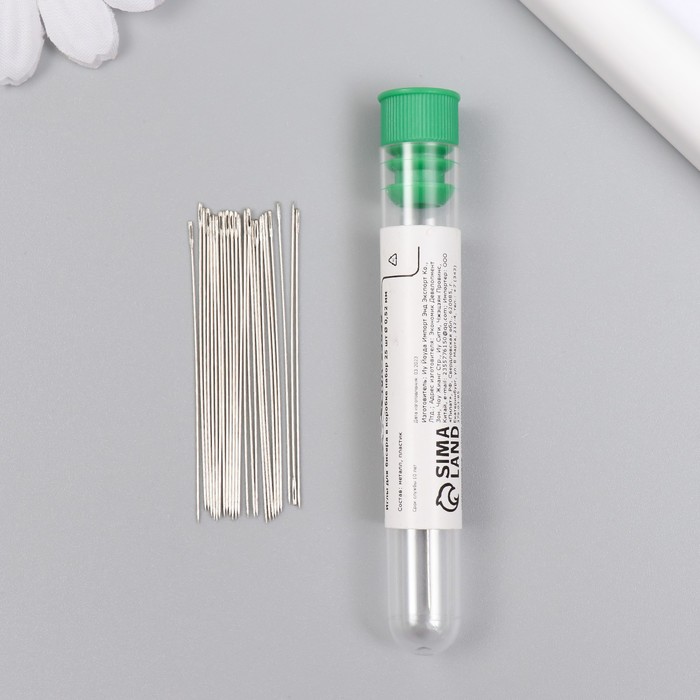 Иглы металл для бисера в стеклянной колбе тонкие набор 10 шт., d=0.7×120 мм, 1.5×1.5×14 см