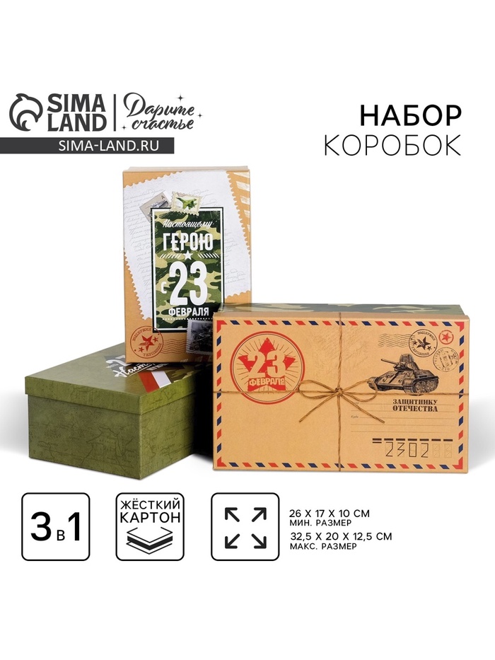Набор коробок 3 в 1, упаковка подарочная, «С 23 февраля», 26 х 17 х 10 - 32.5 х 20 х 12.5 см