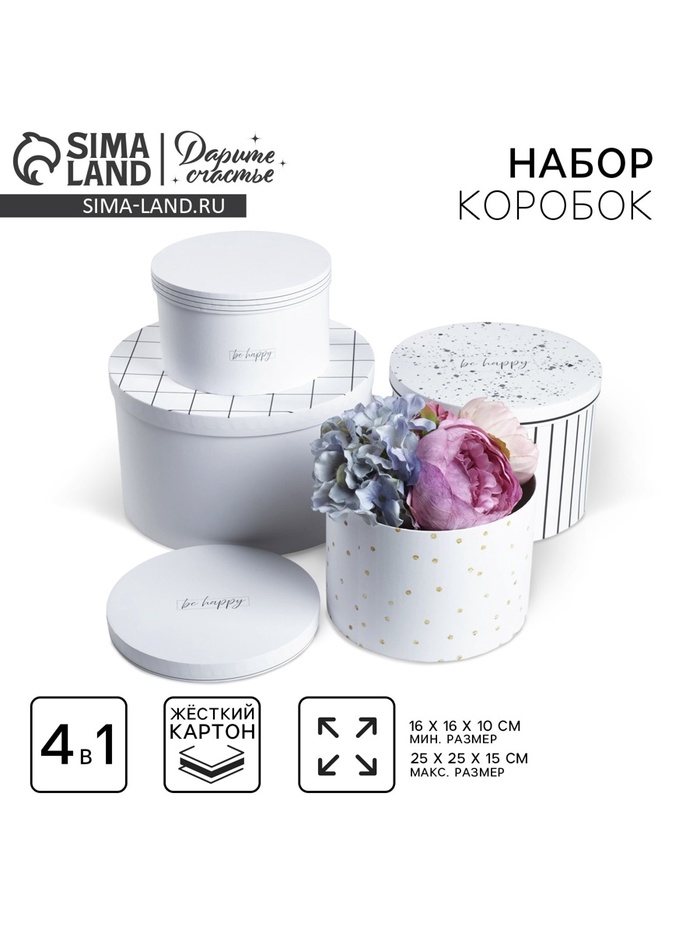 Набор коробок 4 в 1, упаковка подарочная, «Be happy», 16 х 16 х 10 - 25 х 25 х 15 см