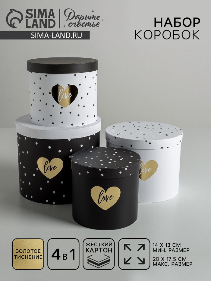 Набор коробок для цветов 4 в 1, упаковка подарочная, «Чёрно-белый», 14 х 14 х 13 см - 20 х 20 х 17.5 см