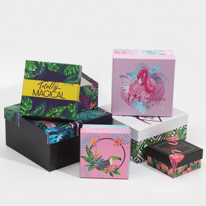 Набор коробок 6 в 1, упаковка подарочная, «Фламинго», 10 х 10 х 6 - 20 х 20 х 11 см