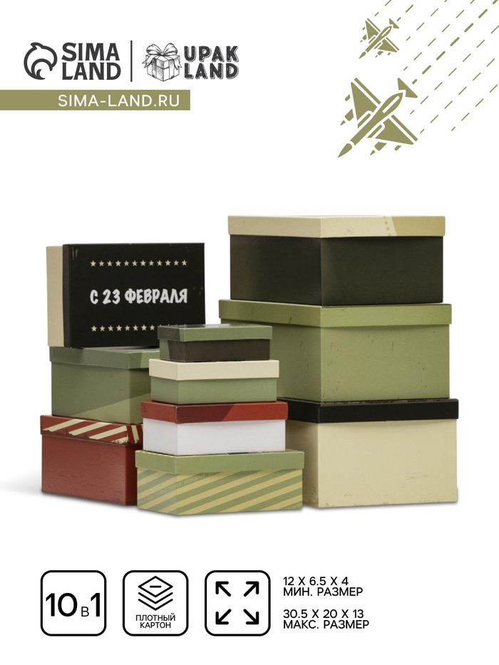 Набор подарочных коробок 10 в 1 «23 февраля», 30.5×20×13 — 12×6.5×4 см