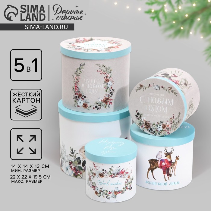 Набор подарочных коробок 5 в 1 «С Новым годом», 13 х 14‒19.5 х 22 см