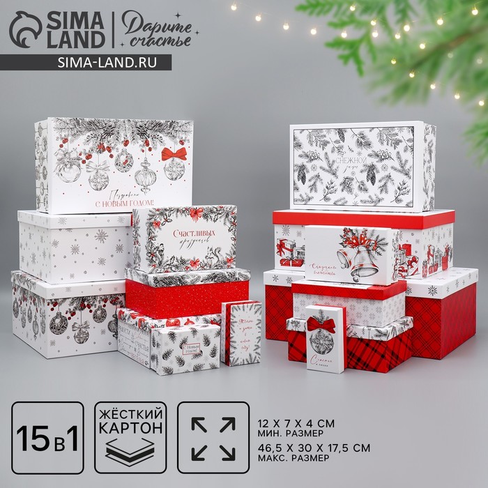 Набор новогодних подарочных коробок 15 в 1 «Счастья и любви», 12 х 7 х 4 см - 46.5 х 30 х 17.5 см